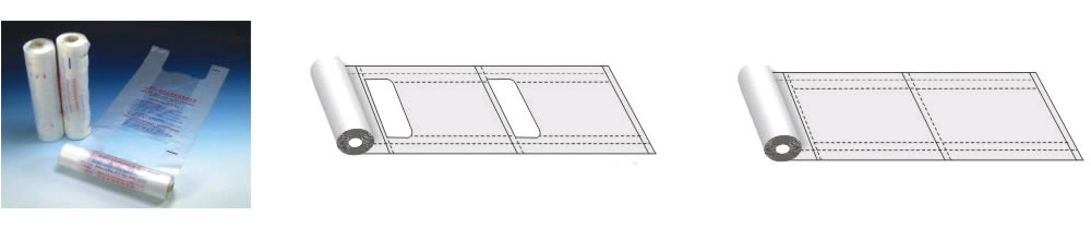 本機生產(chǎn)的高、低密度聚乙烯膜袋,適用于超市購物、商場購物。